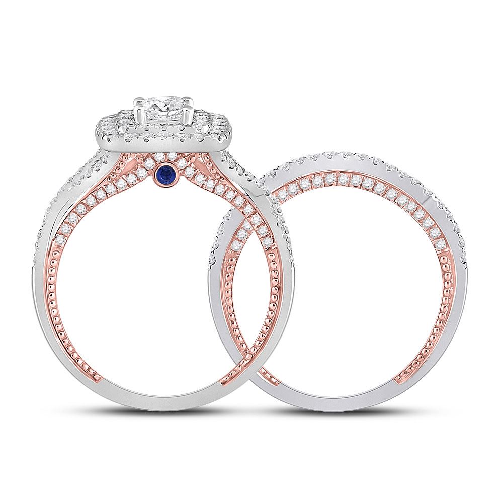 14kt Two-tone Gold Princess Diamond Bridal Wedding Ring Band Set 1-1/2 Cttw