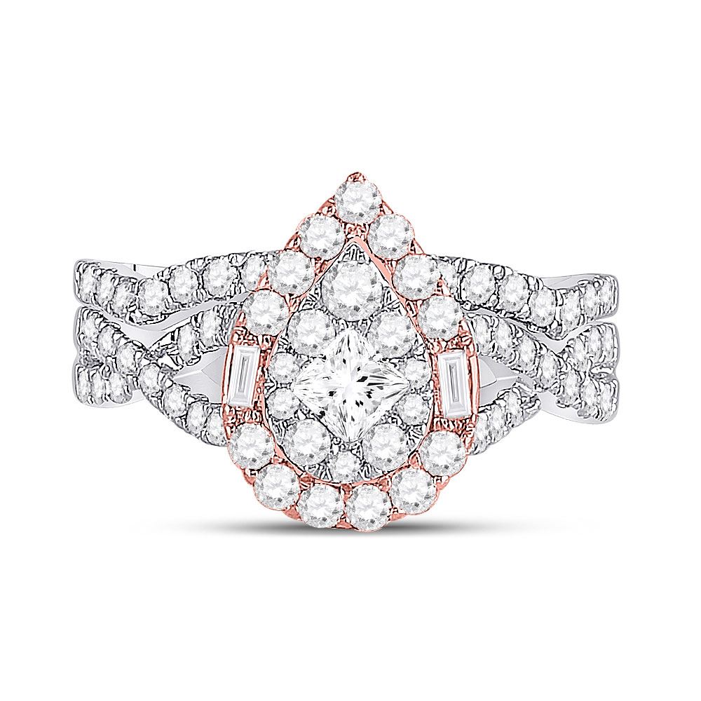 14kt Two-tone Gold Princess Diamond Bridal Wedding Ring Band Set 1-1/2 Cttw