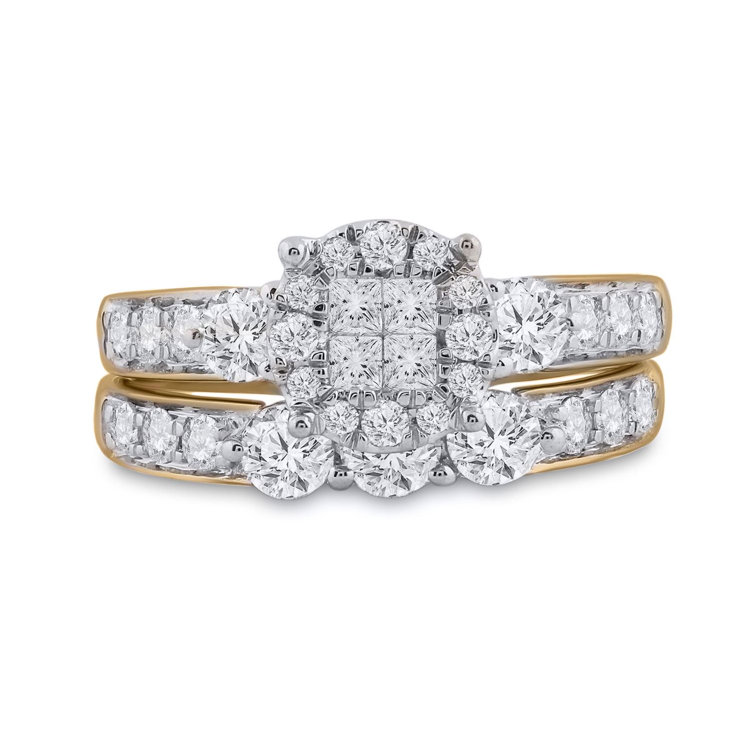 14kt Yellow Gold Princess Diamond Bridal Wedding Ring Band Set 1-1/2 Cttw