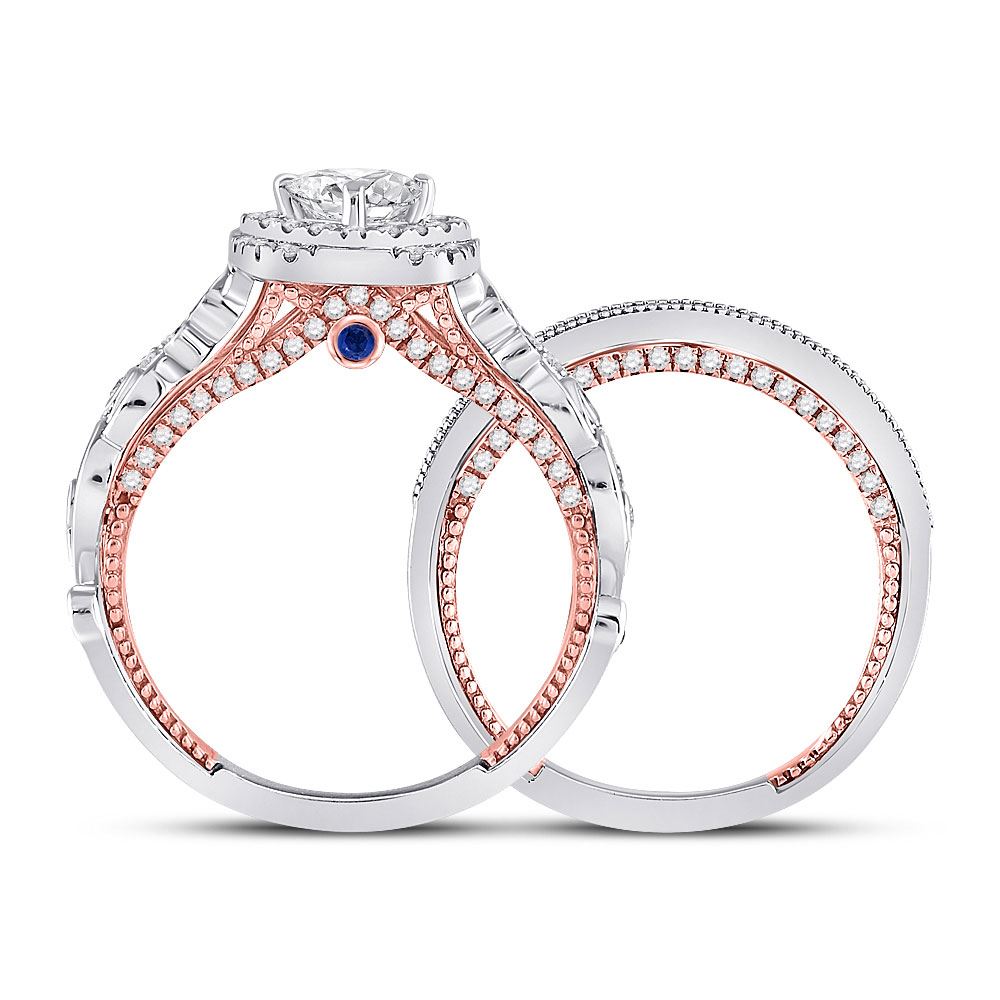 14kt Two-tone Gold Princess Diamond Bridal Wedding Ring Band Set 1-1/3 Cttw