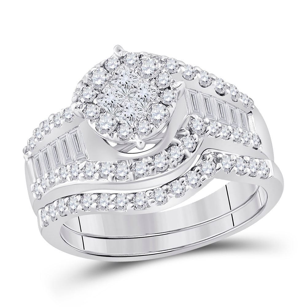 14kt White Gold Princess Diamond Bridal Wedding Ring Band Set 1-1/4 Cttw