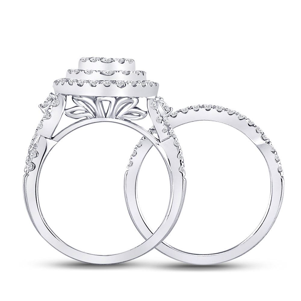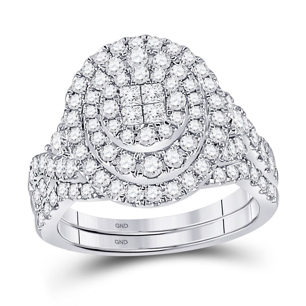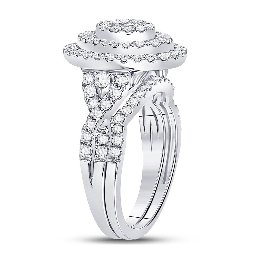 14kt White Gold Princess Diamond Bridal Wedding Ring Band Set 1-1/4 Cttw