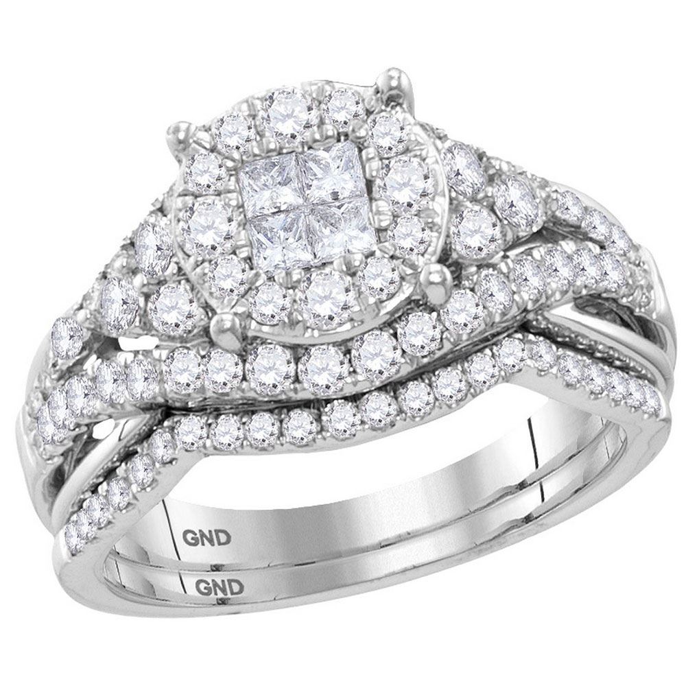 14kt White Gold Princess Diamond Bridal Wedding Ring Band Set 1-1/4 Cttw