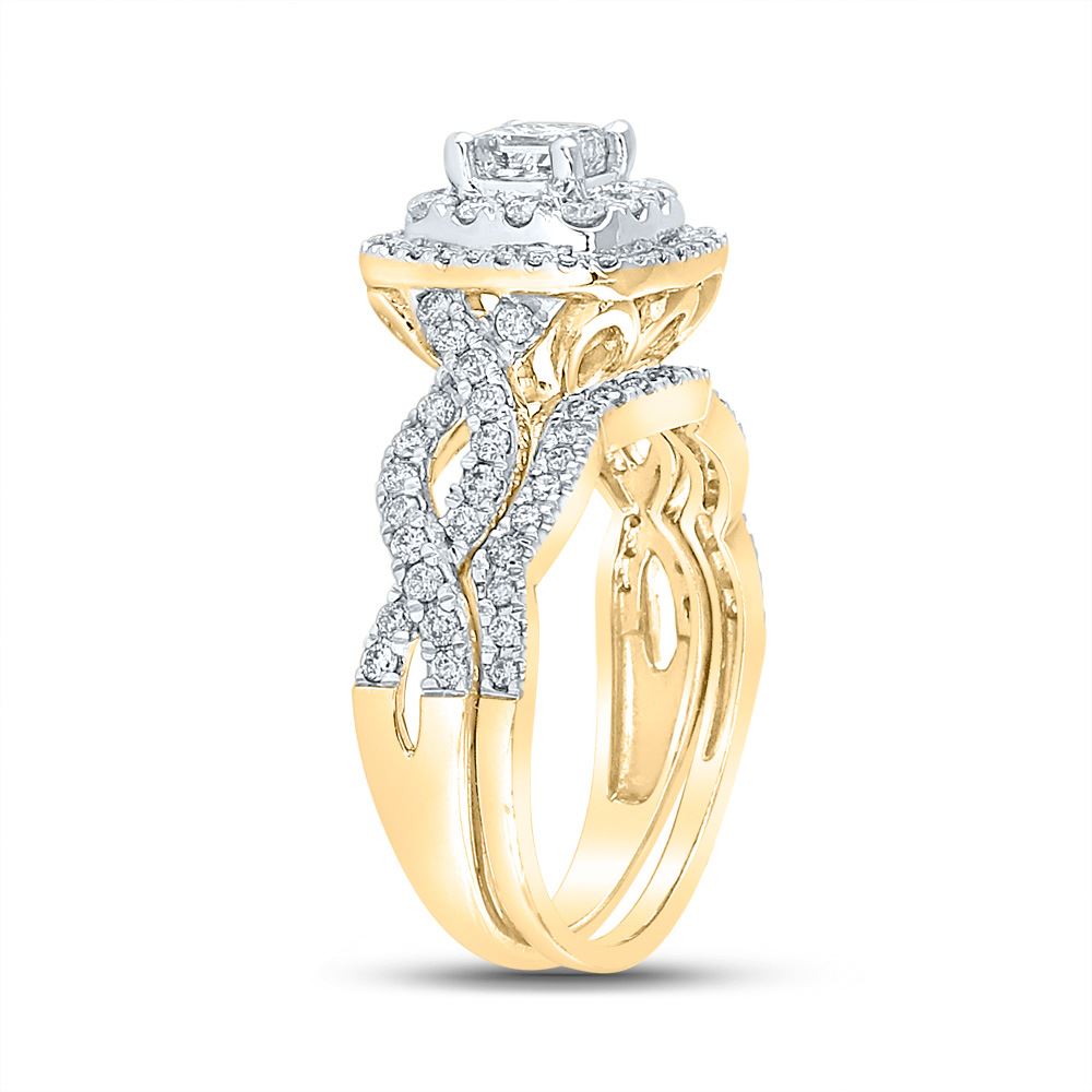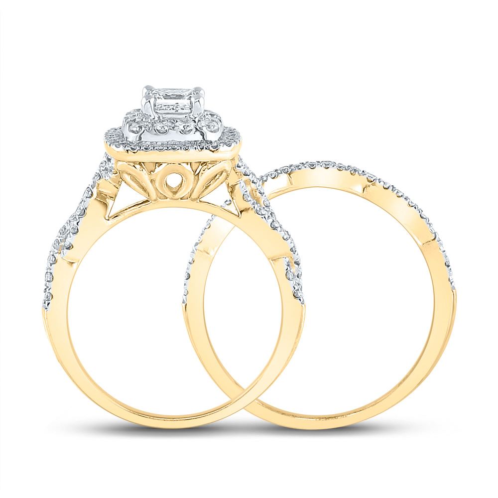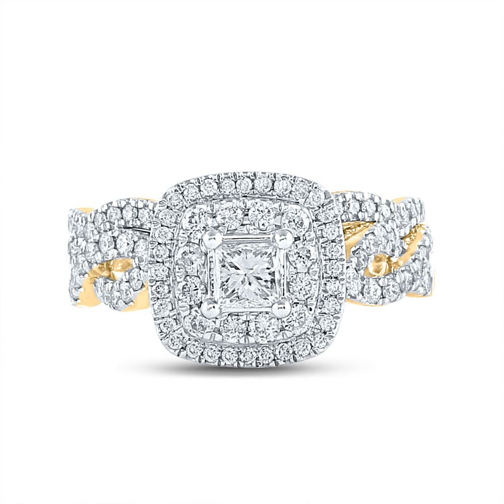 14kt Yellow Gold Princess Diamond Bridal Wedding Ring Band Set 1-1/5 Cttw