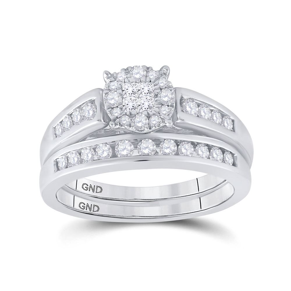 14kt White Gold Princess Diamond Bridal Wedding Ring Band Set 1/2 Cttw