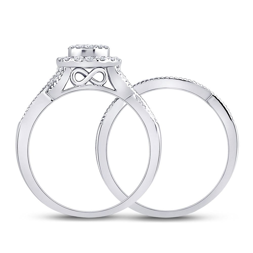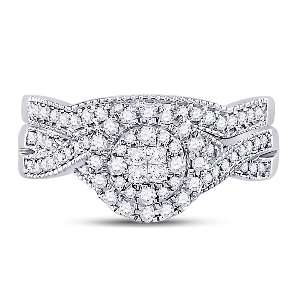 14kt White Gold Princess Diamond Bridal Wedding Ring Band Set 1/2 Cttw