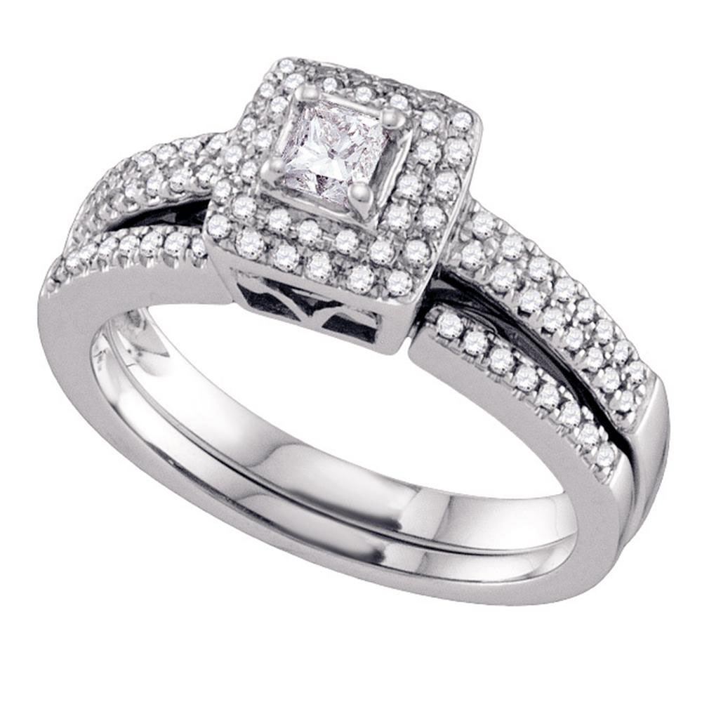 14kt White Gold Princess Diamond Bridal Wedding Ring Band Set 1/2 Cttw