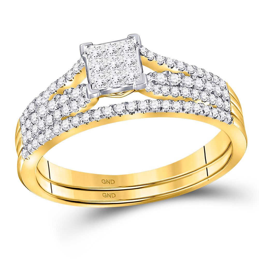 14kt Yellow Gold Princess Diamond Bridal Wedding Ring Band Set 1/2 Cttw