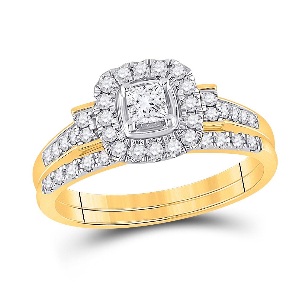 14kt Yellow Gold Princess Diamond Bridal Wedding Ring Band Set 1/2 CttwItem Number: GND1134081Gemstone Details1/2 Carats total weight --- 1/6 carat center solitaire