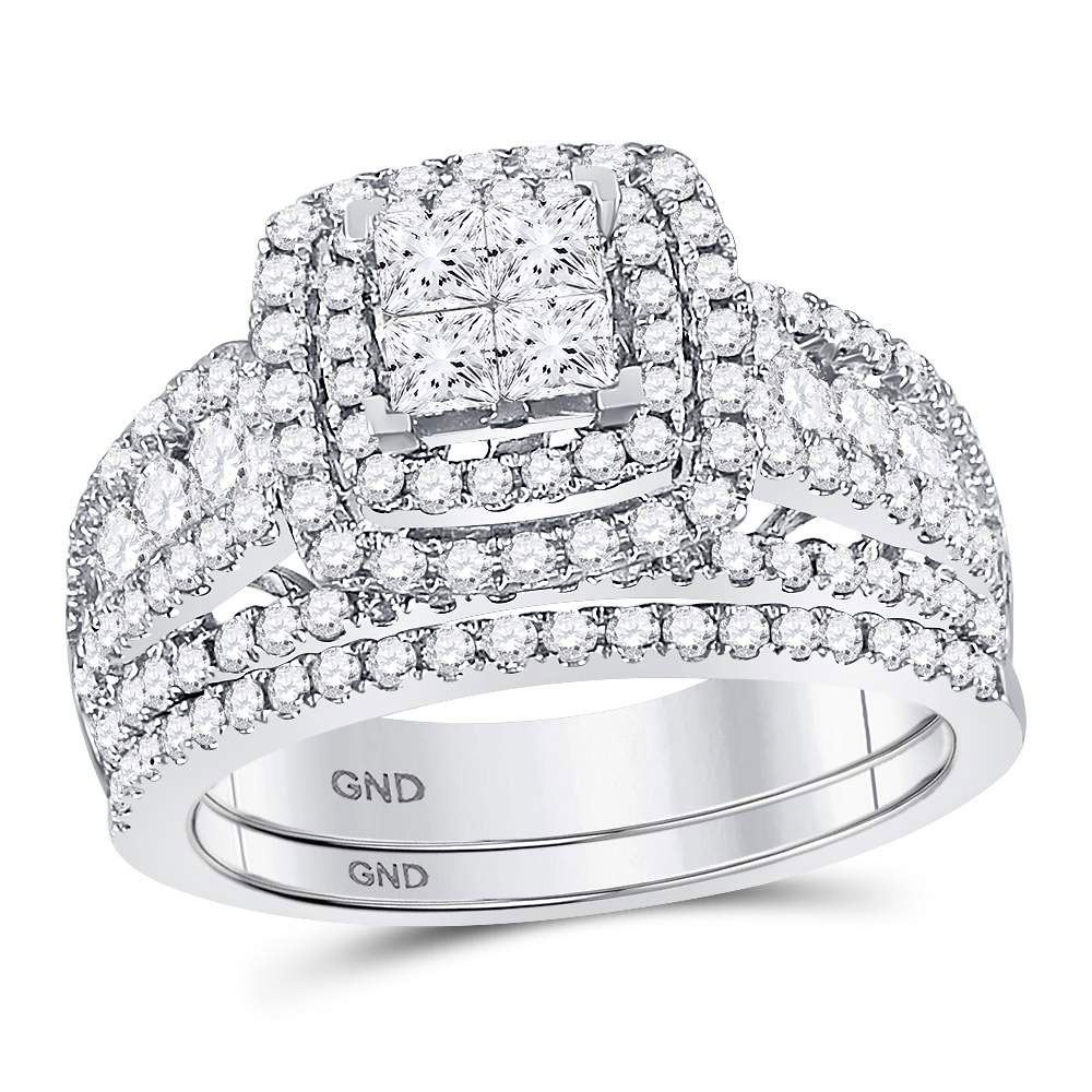 REF-115Y9N ---- Princess Diamond Bridal Wedding Ring Band Set 1-3/4 Cttw 14kt White Gold