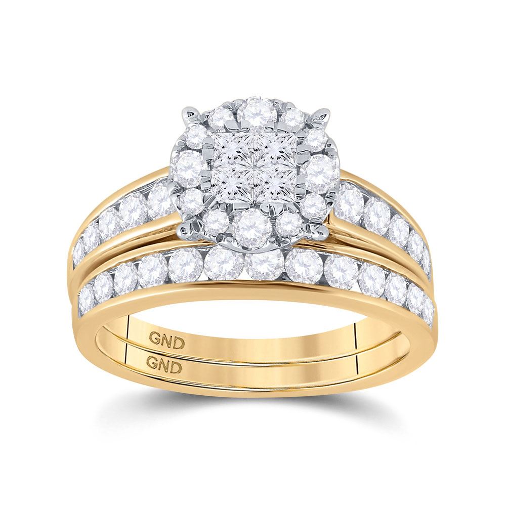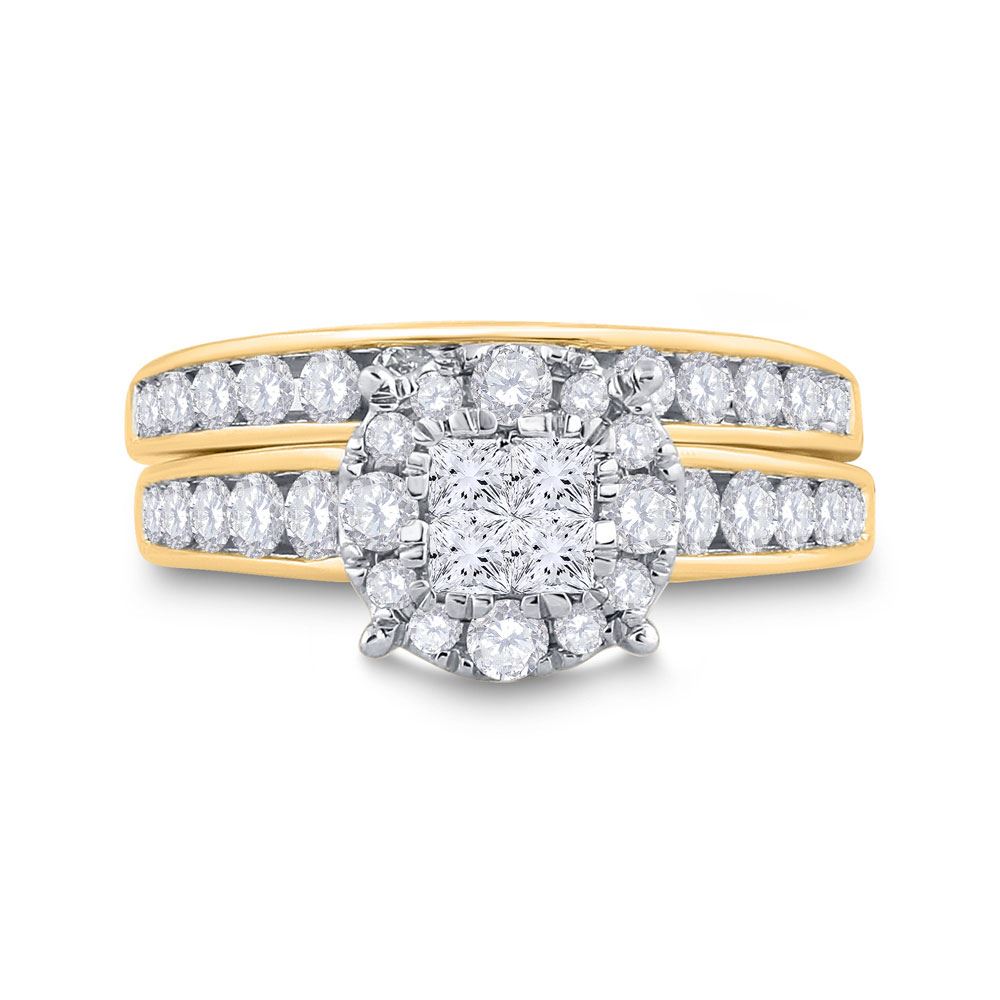 14kt Yellow Gold Princess Diamond Bridal Wedding Ring Band Set 1-3/8 Cttw