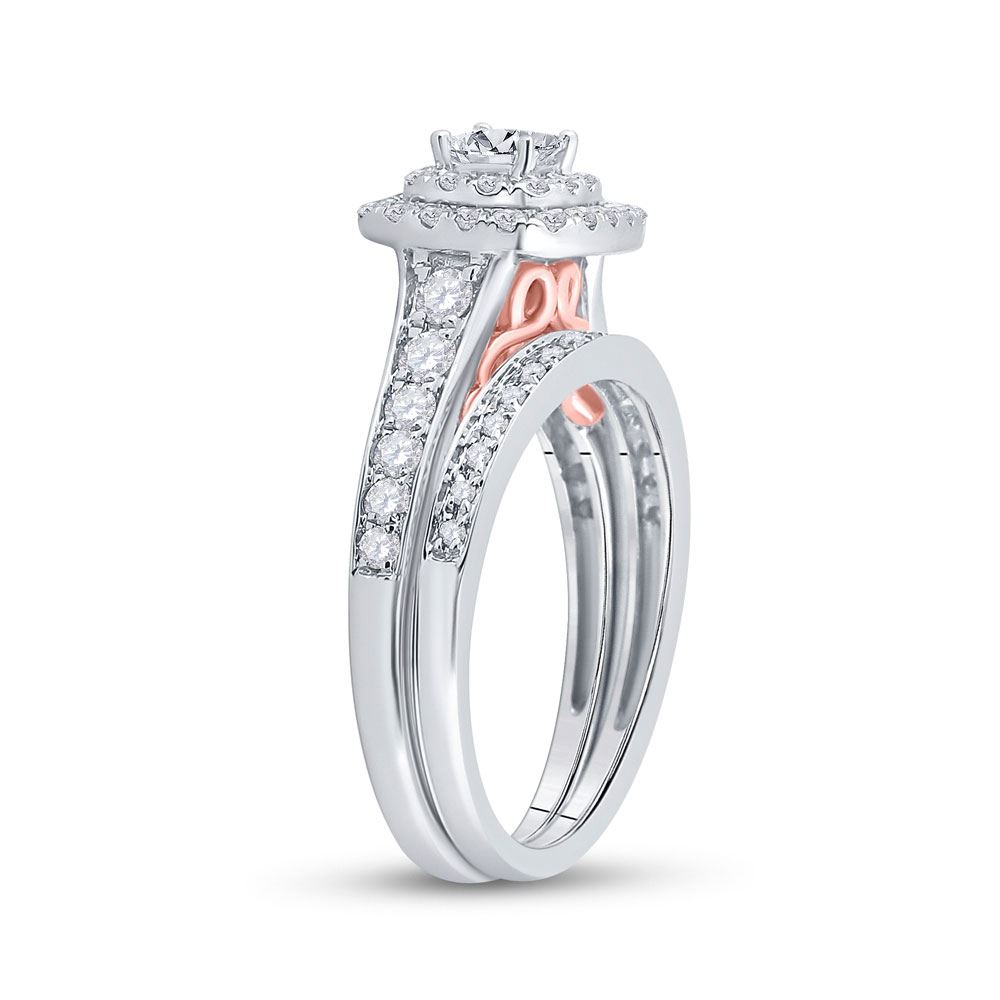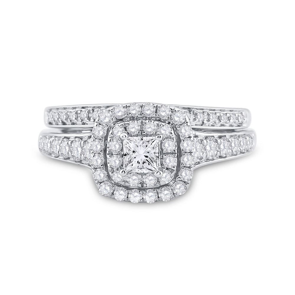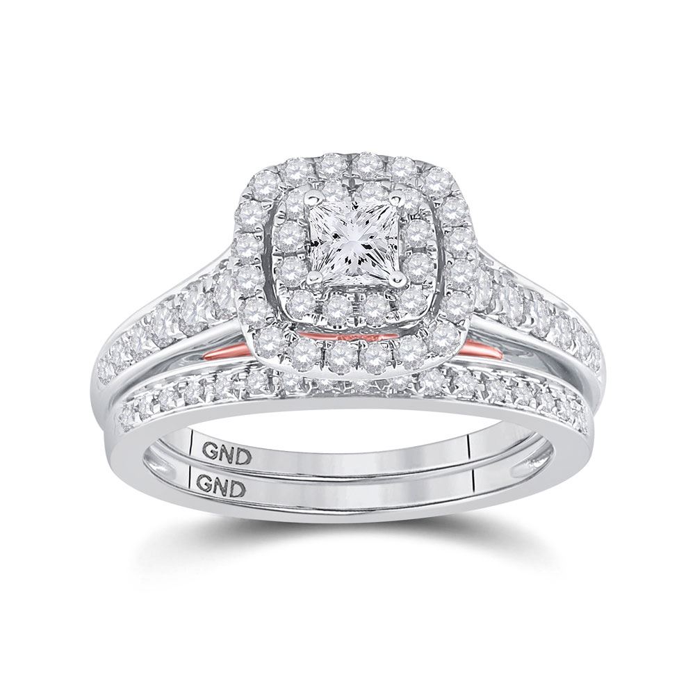 14kt Two-tone Gold Princess Diamond Bridal Wedding Ring Band Set 1 Cttw