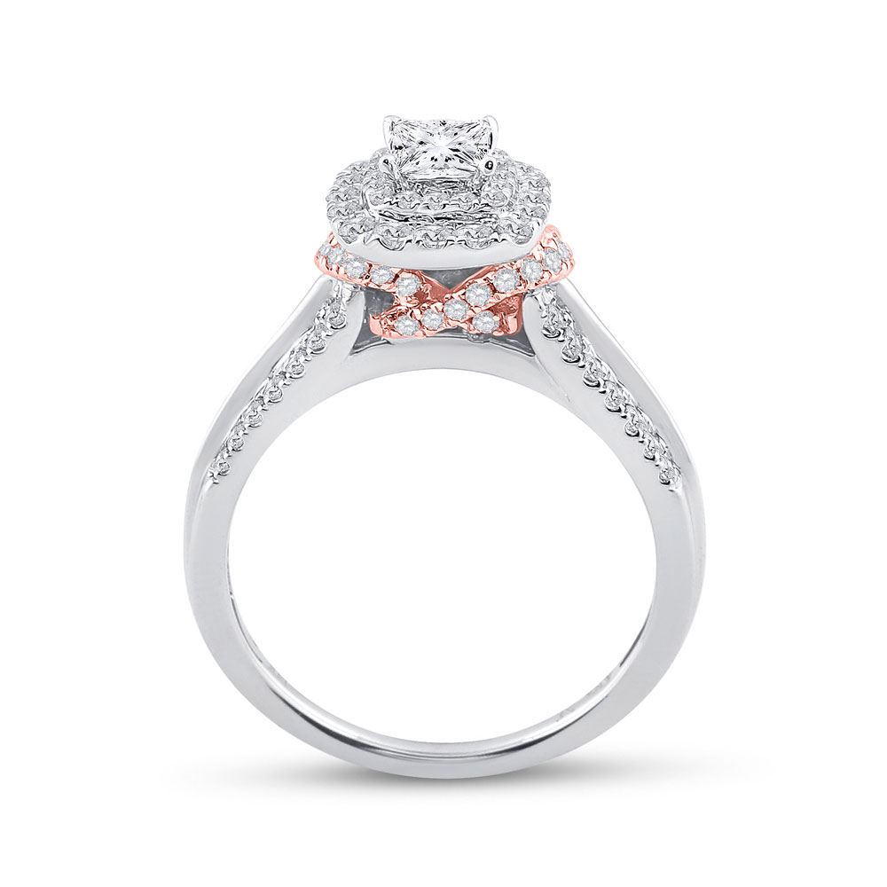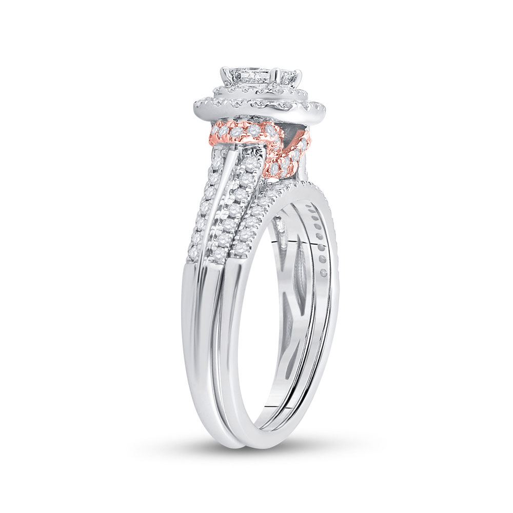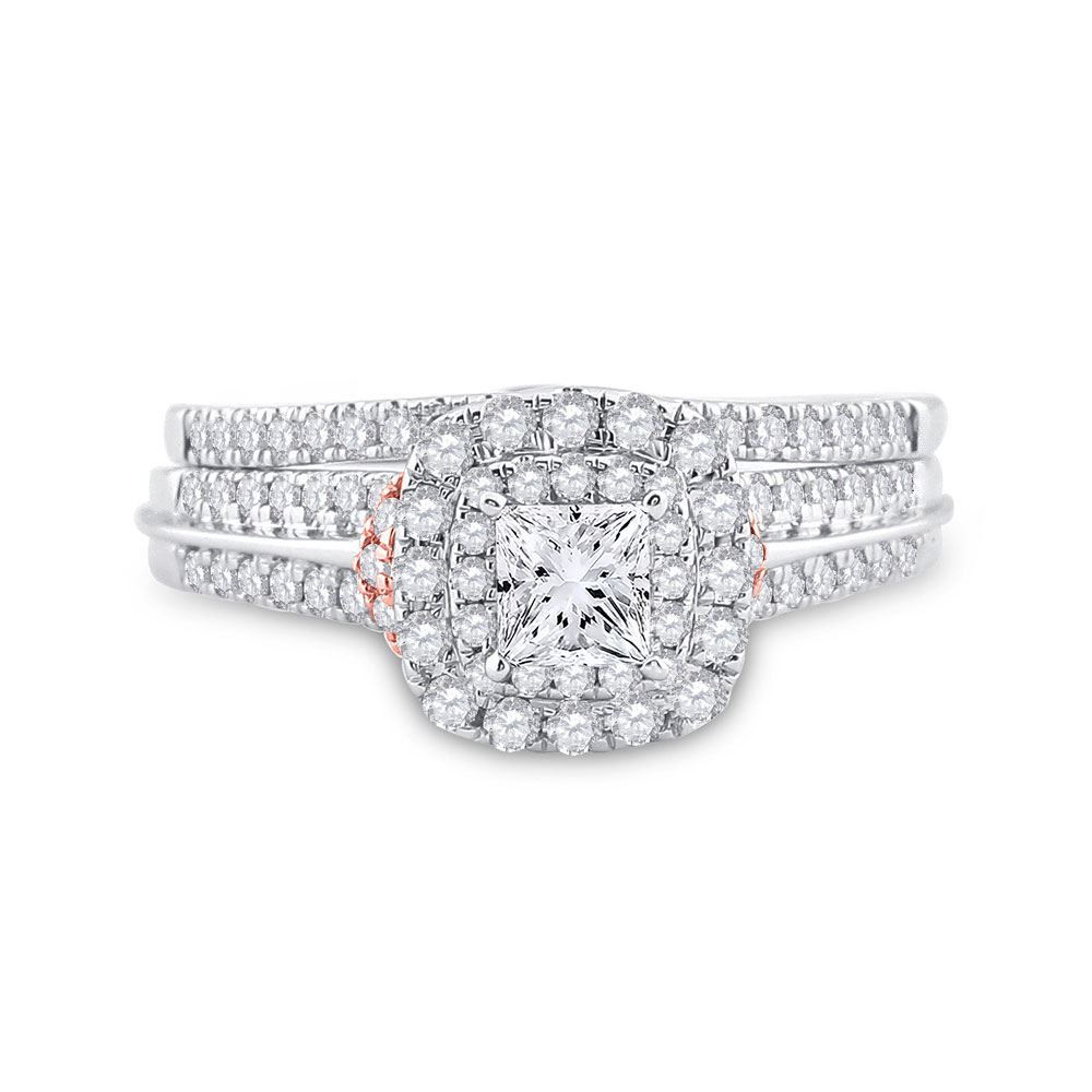 14kt Two-tone Gold Princess Diamond Bridal Wedding Ring Band Set 1 Cttw