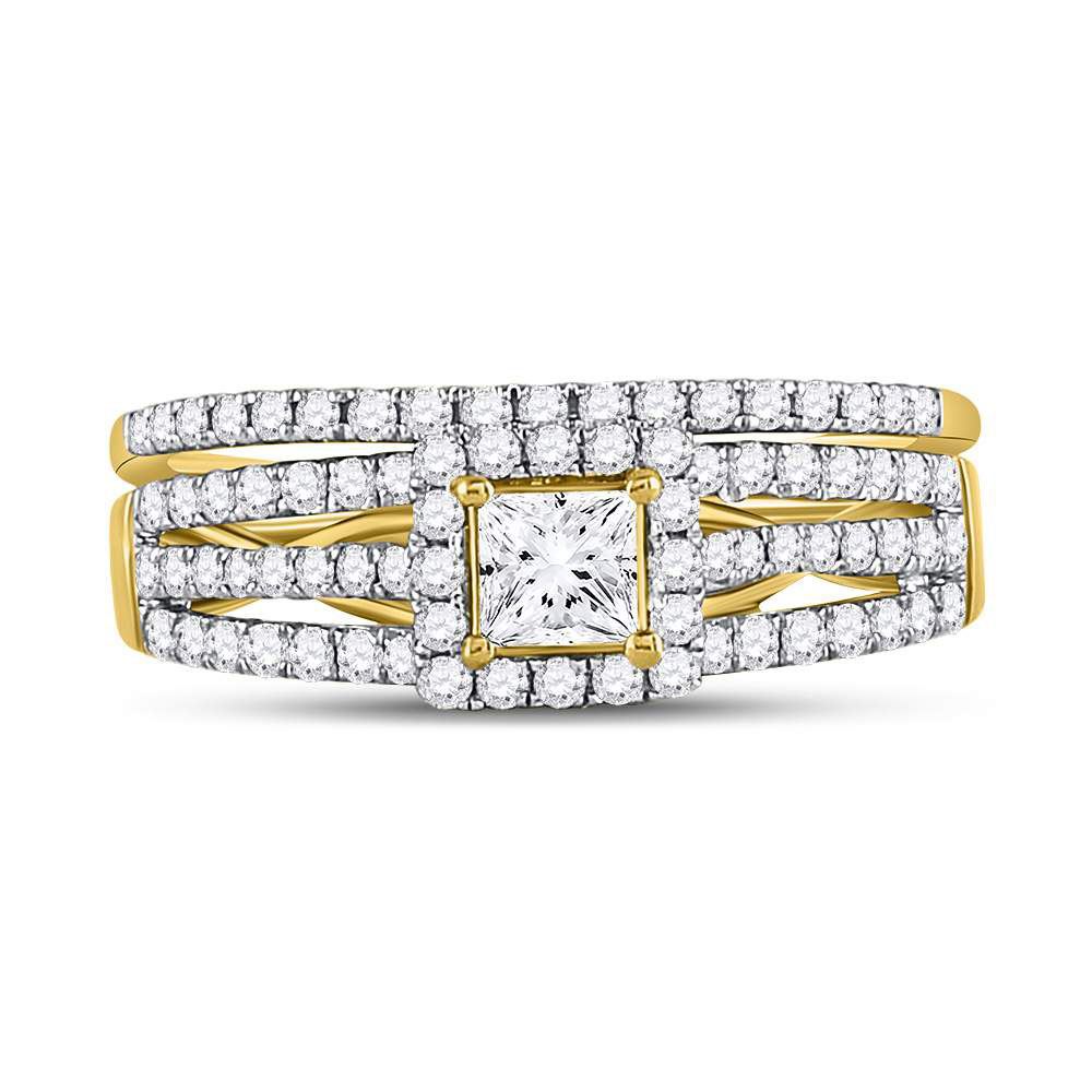 14kt Yellow Gold Princess Diamond Bridal Wedding Ring Band Set 1 Cttw