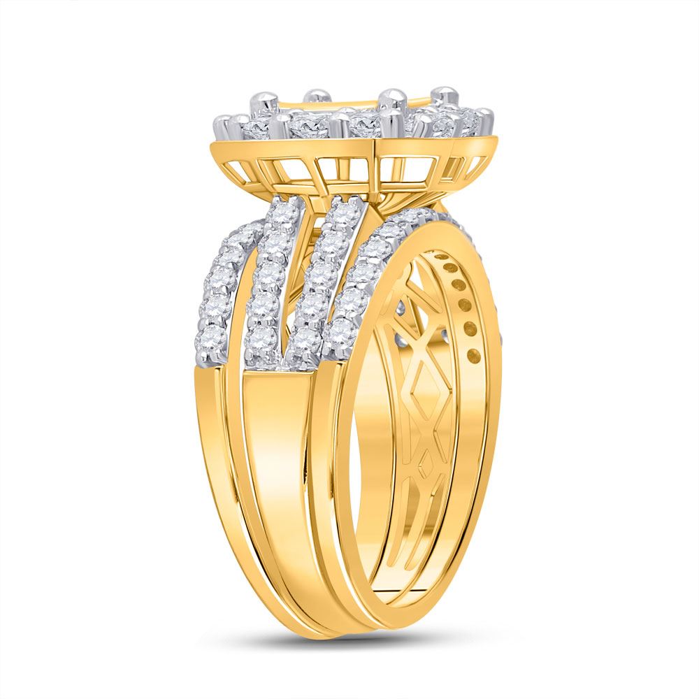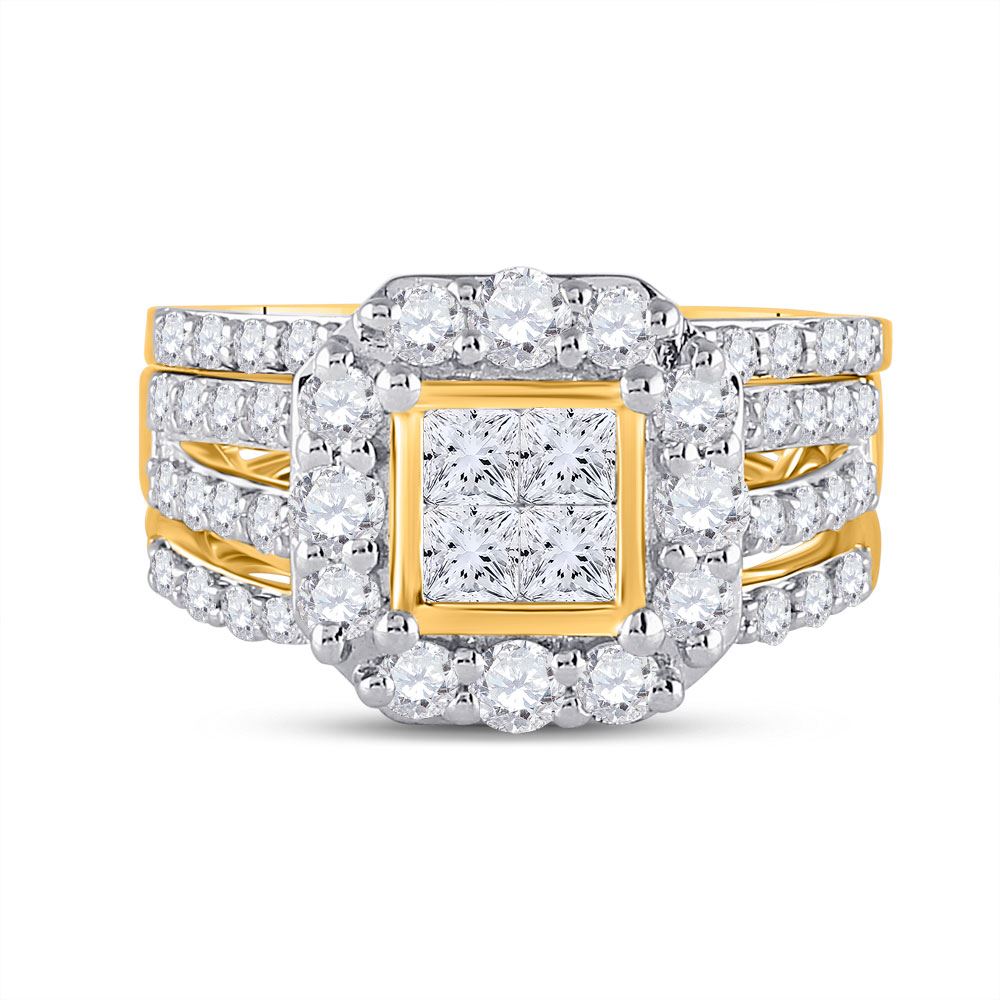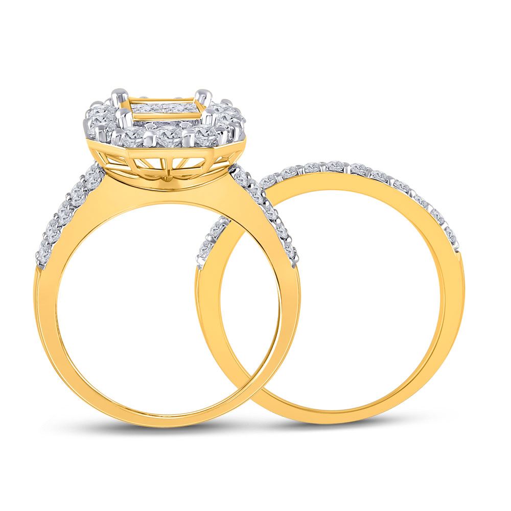 14kt Yellow Gold Princess Diamond Bridal Wedding Ring Band Set 2 Cttw
