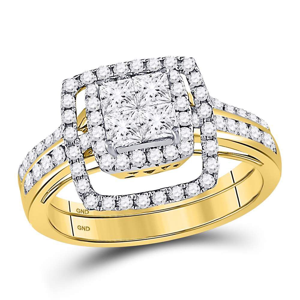 14kt Yellow Gold Princess Diamond Cluster Bridal Wedding Engagement Ring 1 Cttw