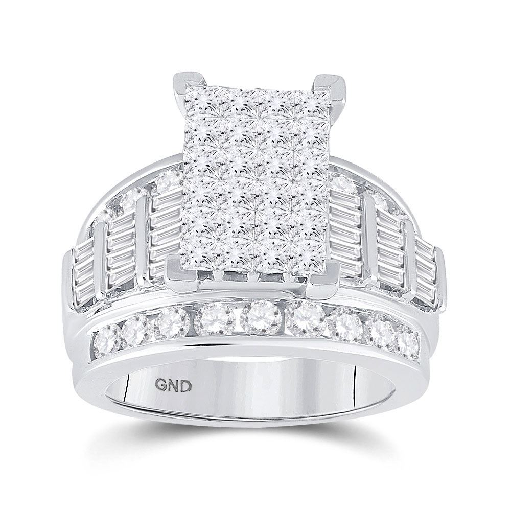 10kt White Gold Princess Diamond Cluster Bridal Wedding Engagement Ring 3 Cttw