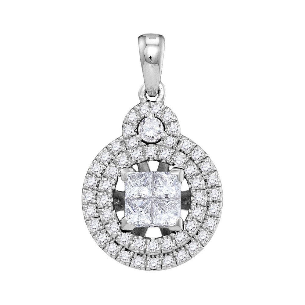 14kt White Gold Womens Princess Diamond Cluster Circle Frame Pendant 7/8 Cttw
