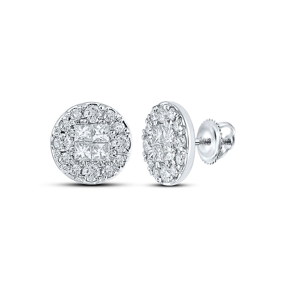 14kt White Gold Womens Princess Diamond Cluster Earrings 1/2 Cttw