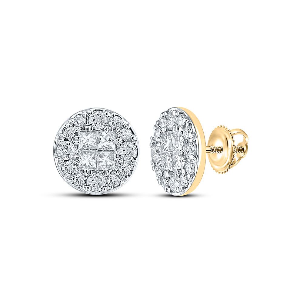 14kt Yellow Gold Womens Princess Round Diamond Cluster Earrings 1/2 Cttw