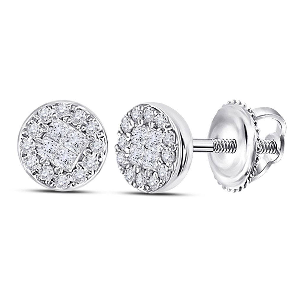 14kt White Gold Womens Princess Diamond Cluster Earrings 1/6 Cttw