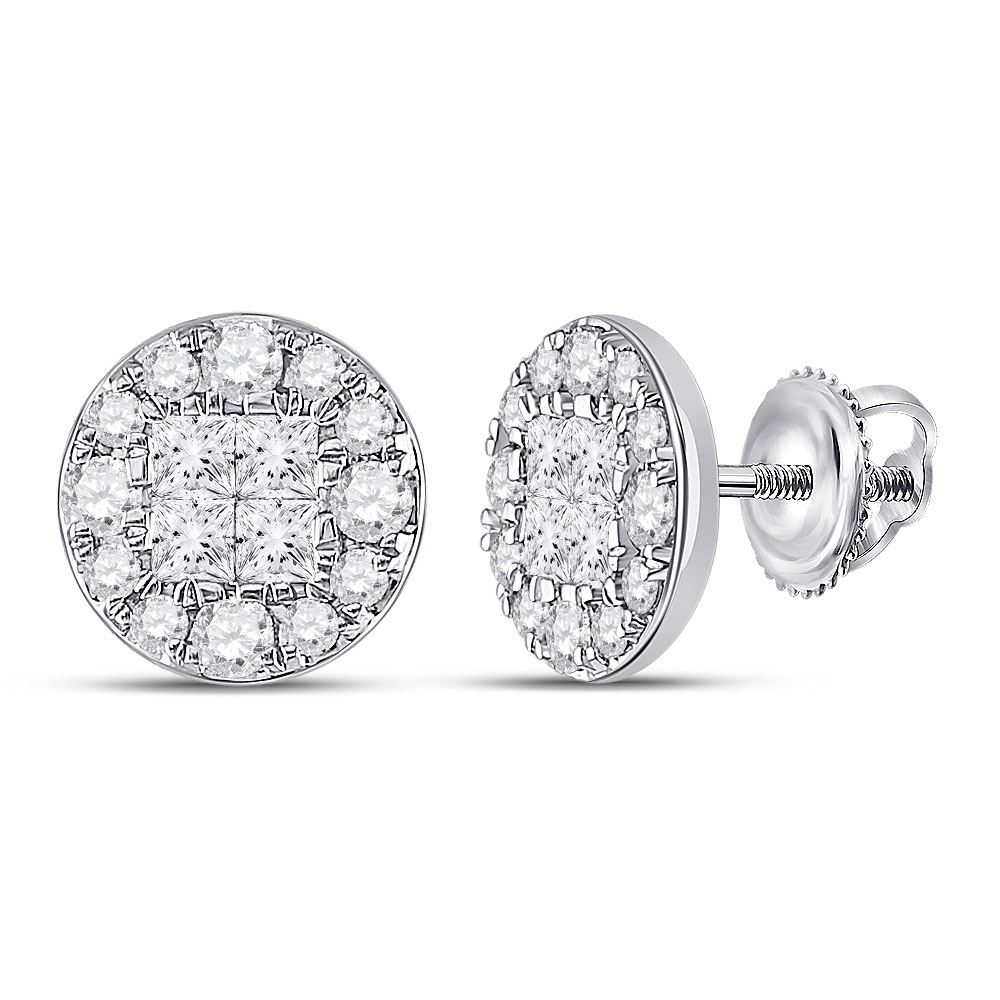 14kt White Gold Womens Princess Round Diamond Cluster Earrings 1 Cttw