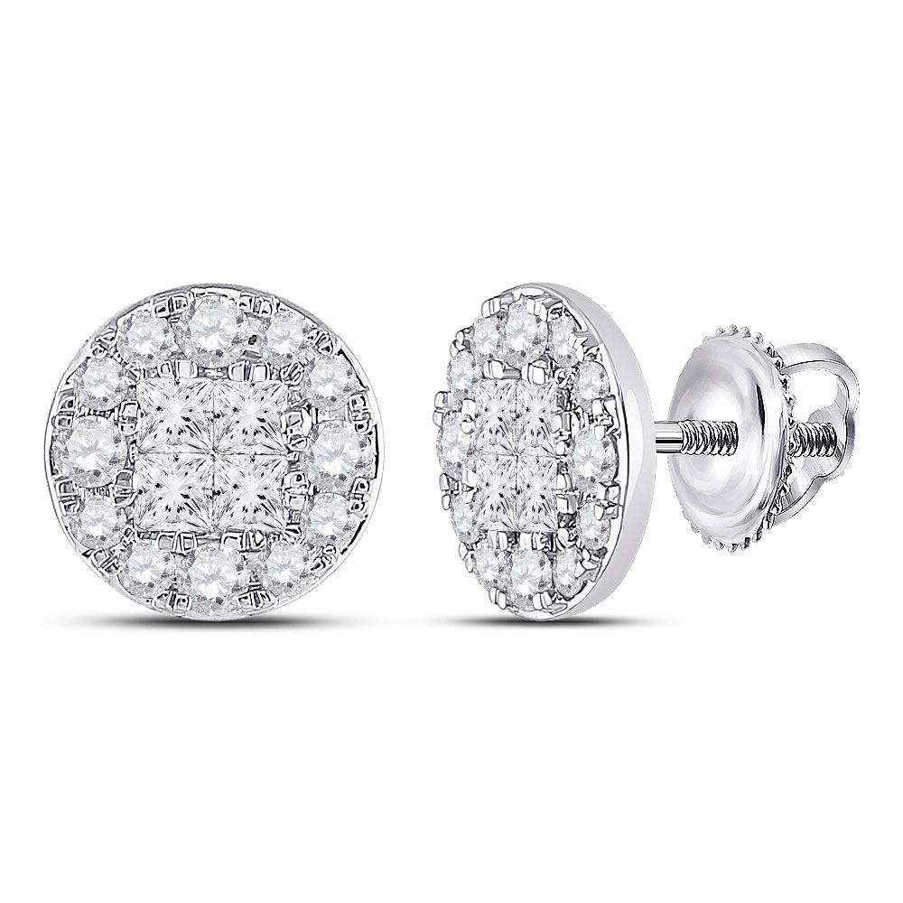 14kt White Gold Womens Princess Round Diamond Cluster Earrings 2 Cttw