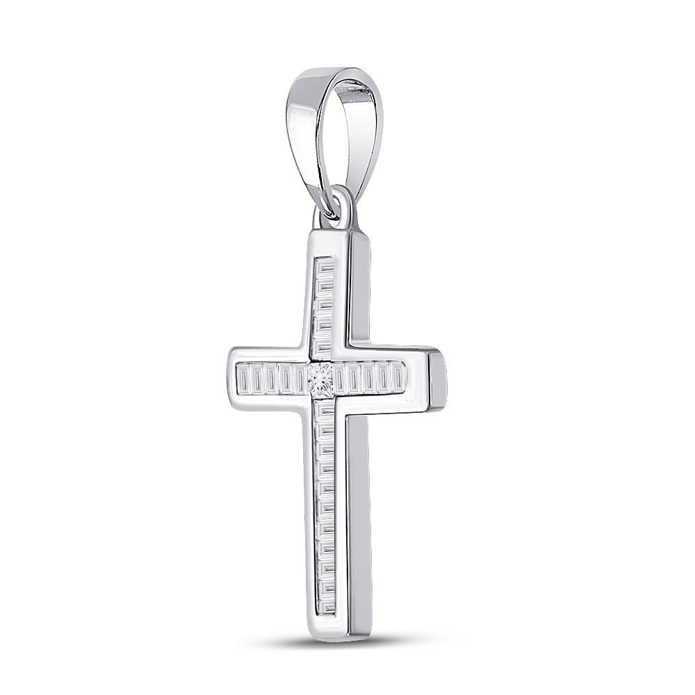 10kt White Gold Womens Princess Diamond Cross Pendant 1/10 Cttw.