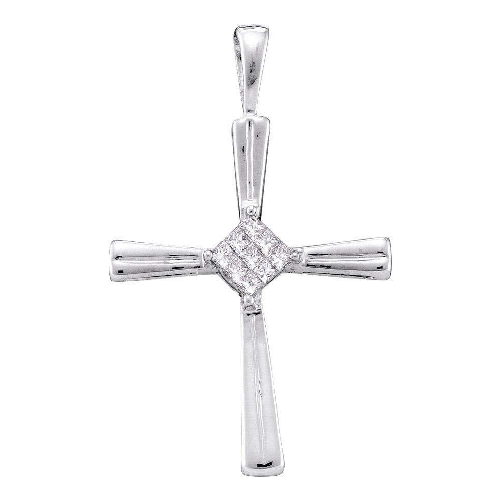 14kt White Gold Womens Princess Diamond Cross Pendant 1/10 Cttw