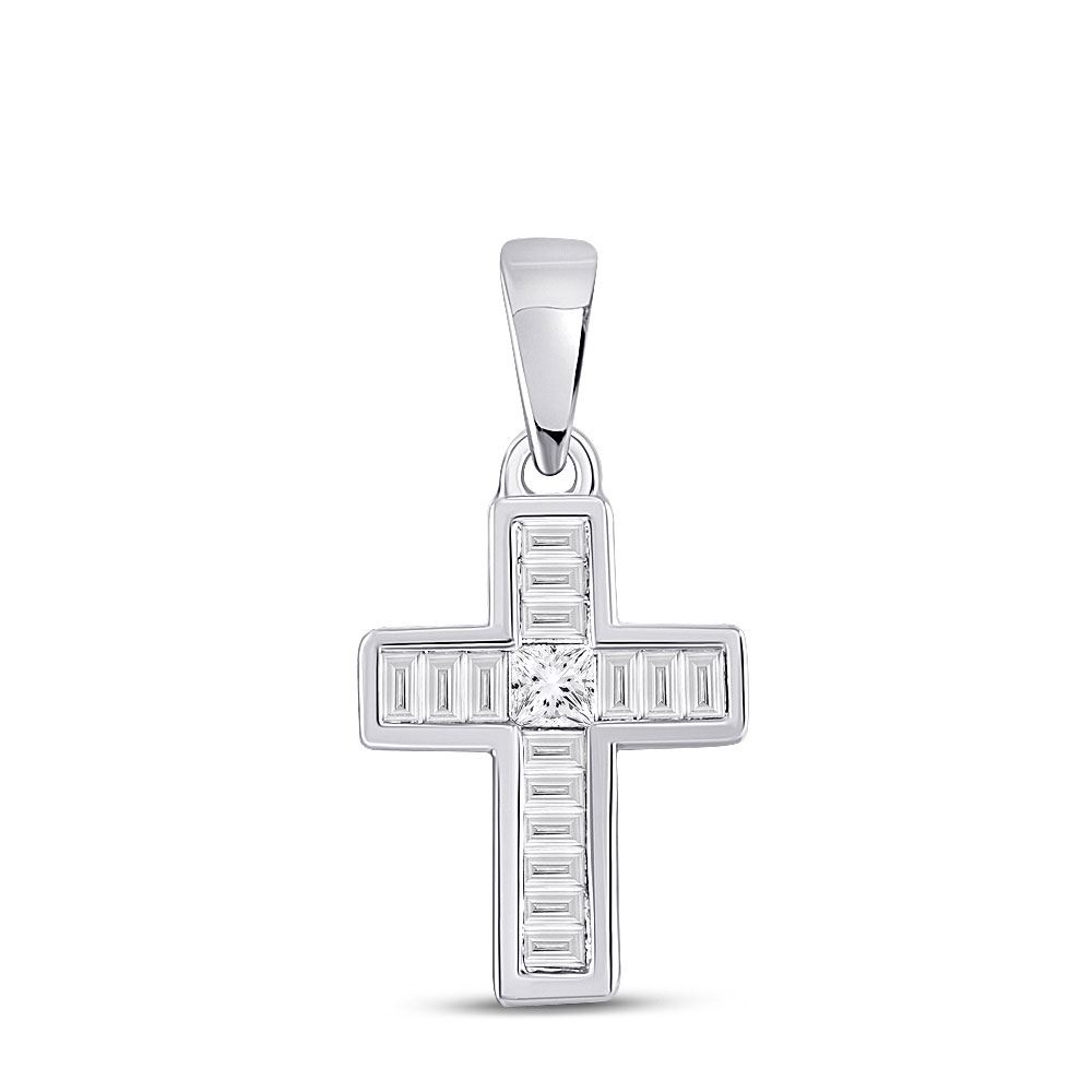 10kt White Gold Womens Princess Diamond Cross Pendant 1/3 Cttw.