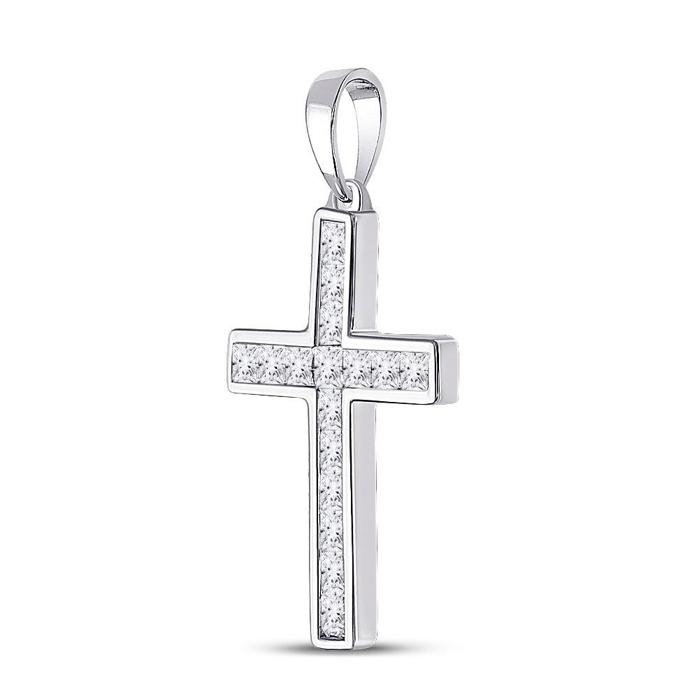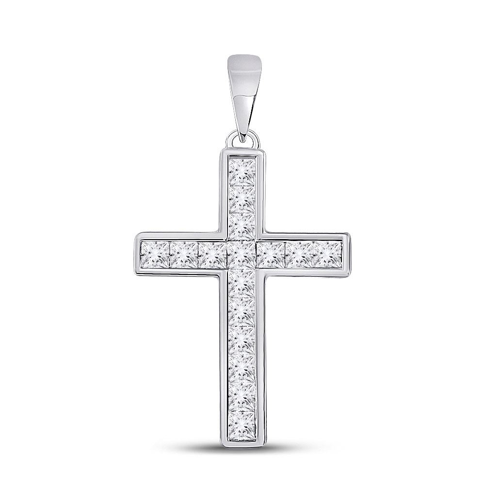 14kt White Gold Womens Princess Diamond Cross Pendant 5/8 Cttw