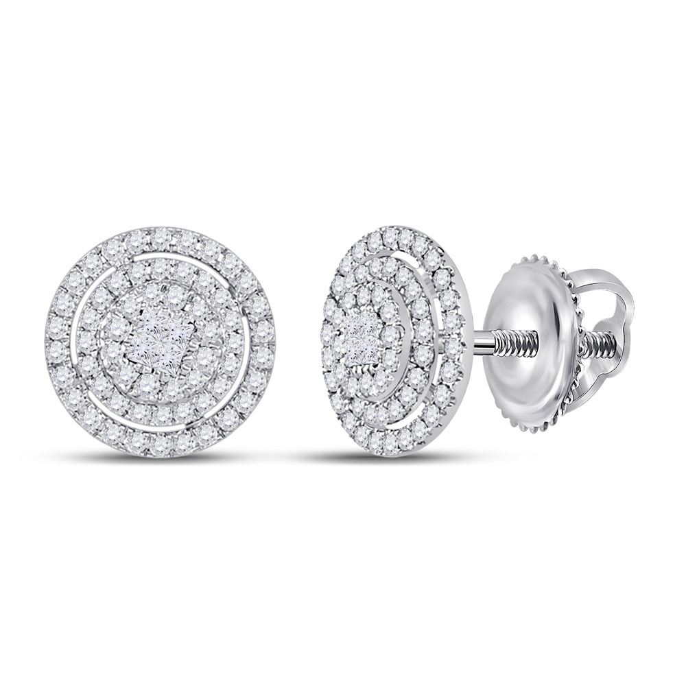 14kt White Gold Womens Princess Diamond Fashion Cluster Earrings 1/2 Cttw