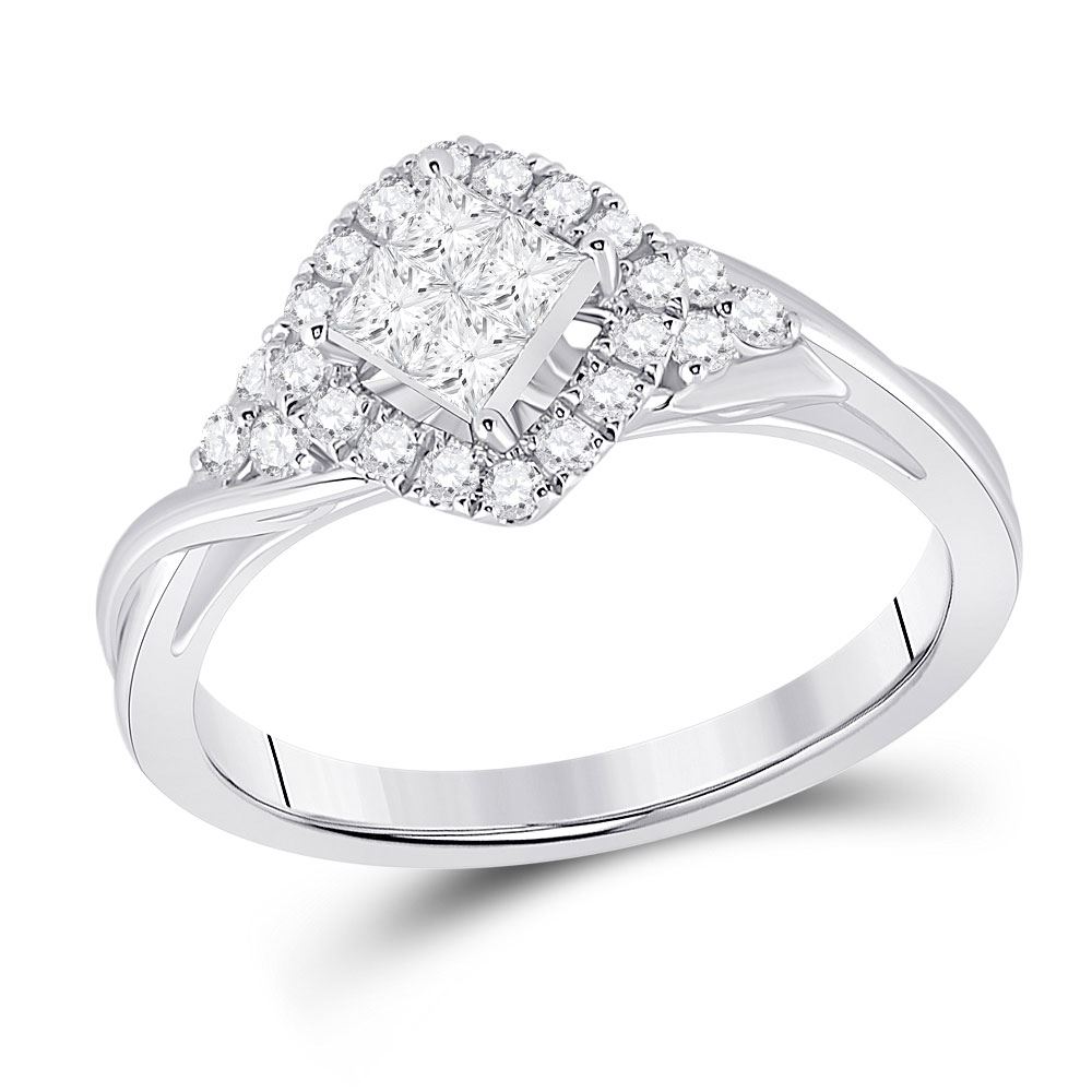 14kt White Gold Womens Princess Diamond Offset Square Fashion Ring 1/2 Cttw