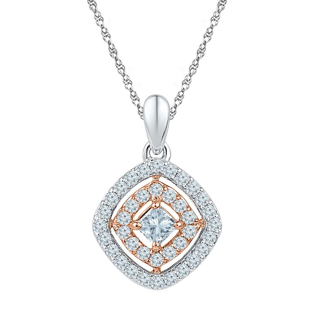 10kt Two-tone Gold Womens Princess Diamond Offset Square Pendant 1/2 Cttw