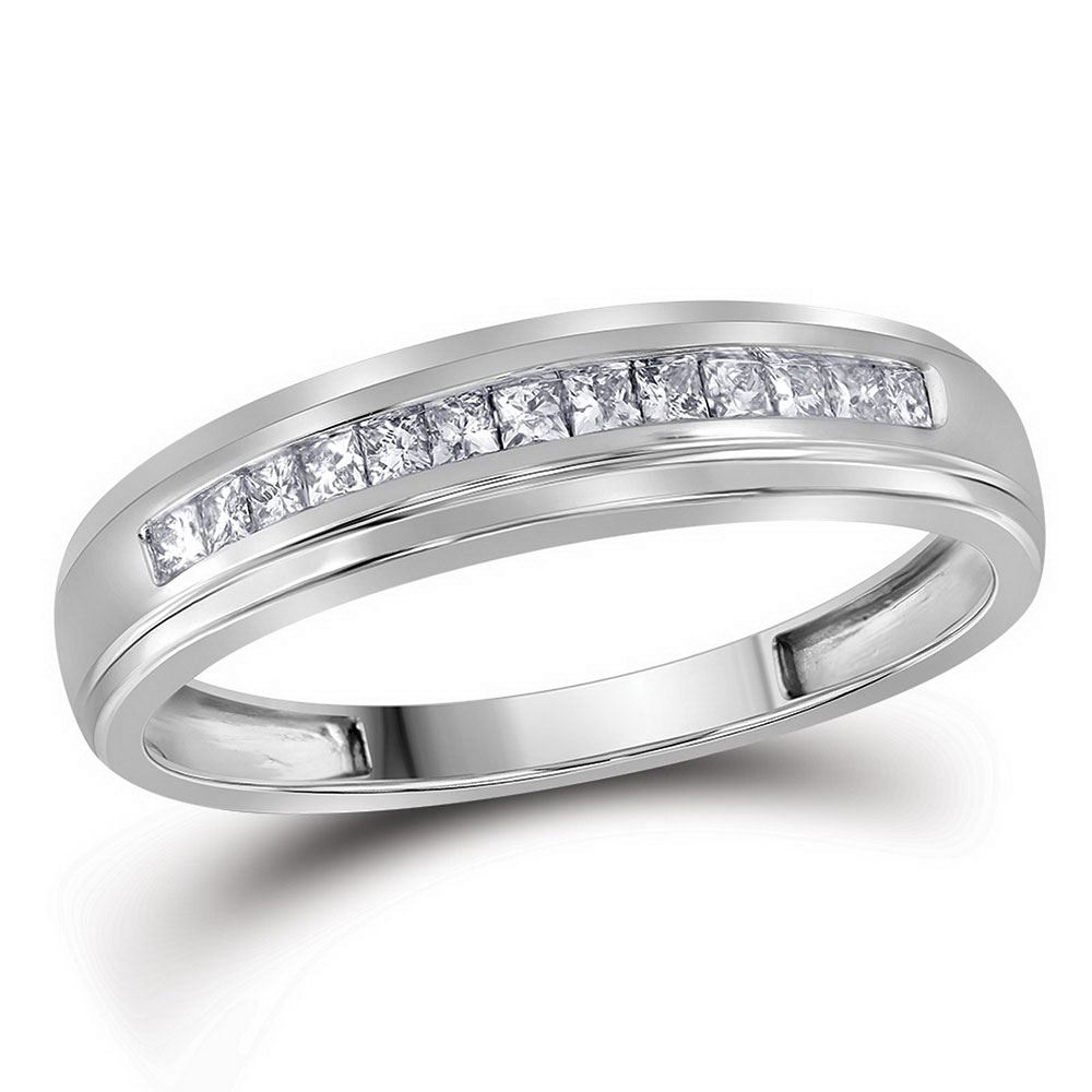 10kt White Gold Womens Princess Diamond Single Row Wedding Band 1/4 Cttw.