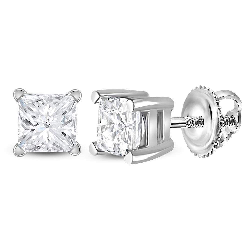 14kt White Gold Womens Princess Diamond Solitaire Earrings 3/4 Cttw