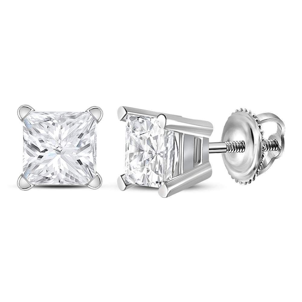 14kt White Gold Unisex Princess Diamond Solitaire Stud Earrings 1 Cttw.