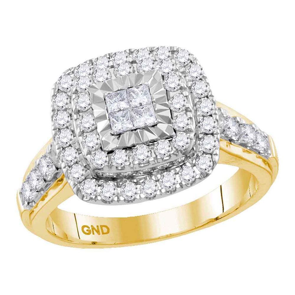 14kt Yellow Gold Princess Diamond Square Cluster Bridal Wedding Engagement Ring 1 Cttw
