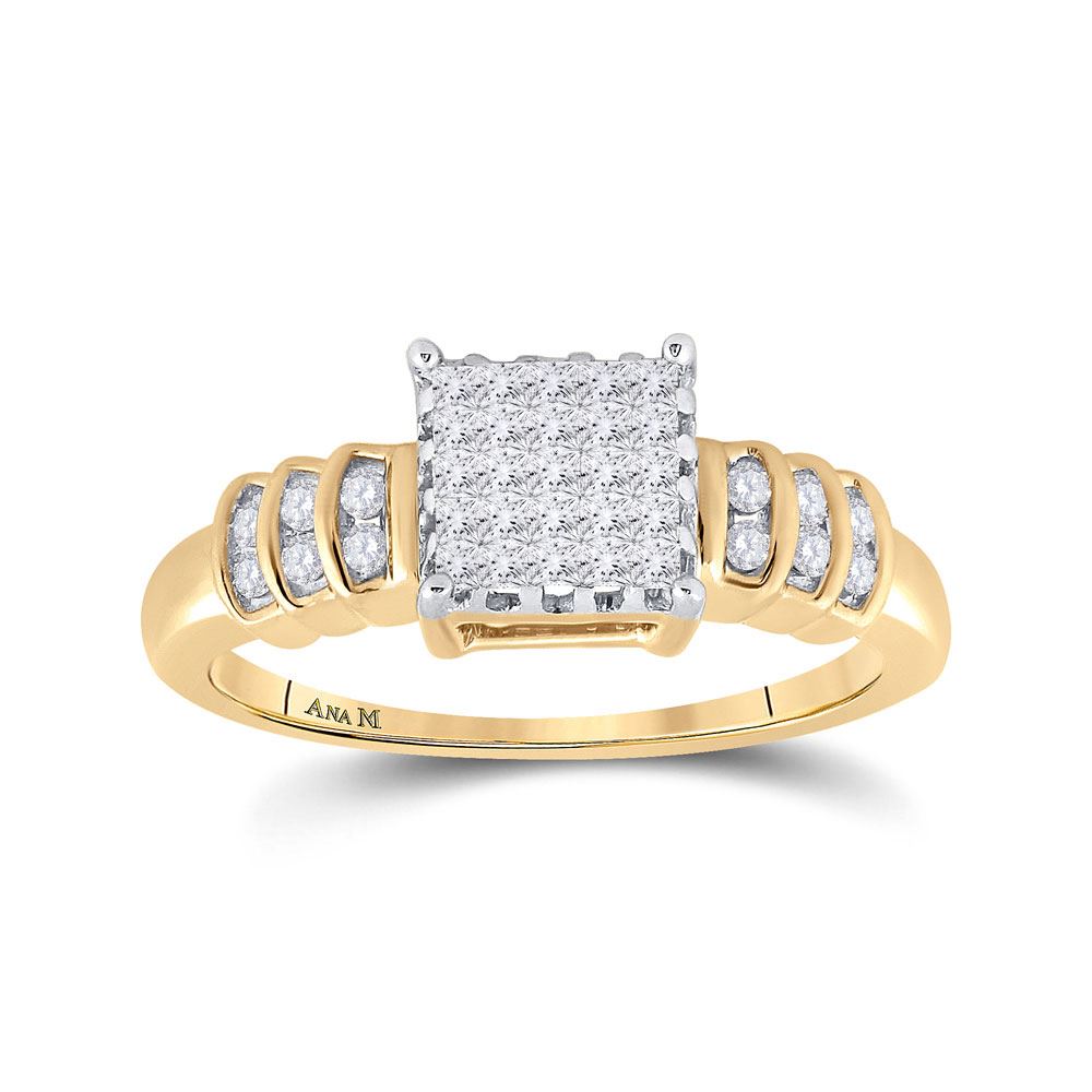 14kt Yellow Gold Womens Princess Diamond Square Cluster Ring 1/3 Cttw