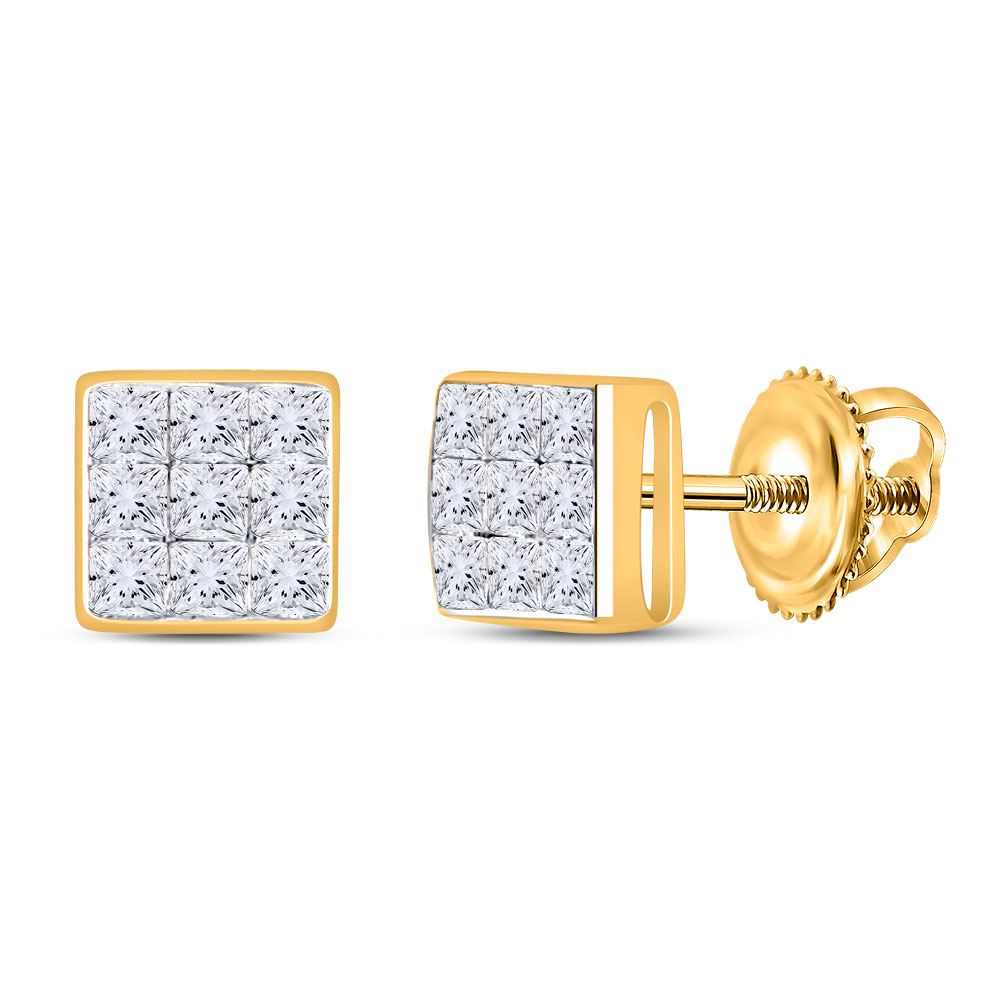 14kt Yellow Gold Womens Princess Diamond Square Earrings 1/4 Cttw.