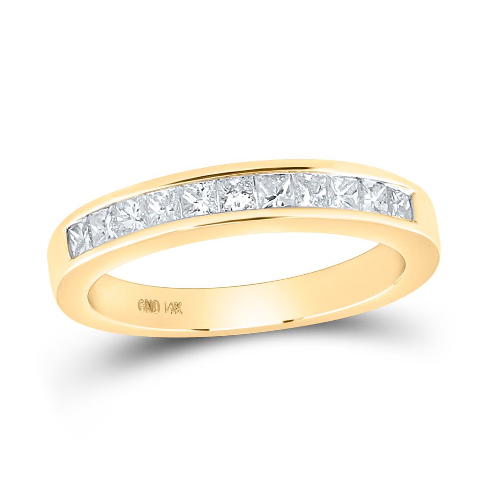 14kt Yellow Gold Womens Princess Diamond Wedding Single Row Band 1/2 Cttw.