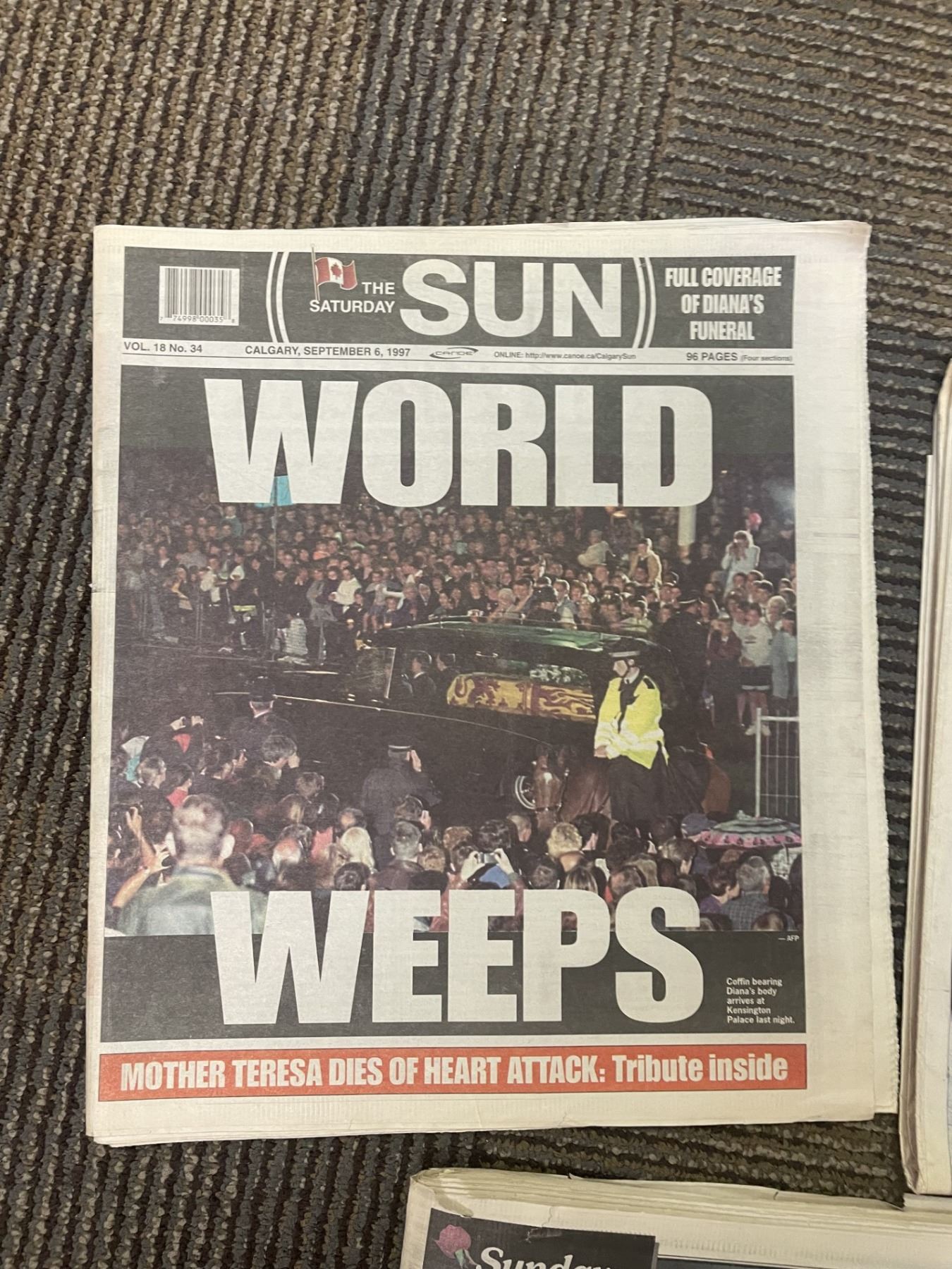 Princess Diana - September 6 and 7 1997 , THREE Newspapers