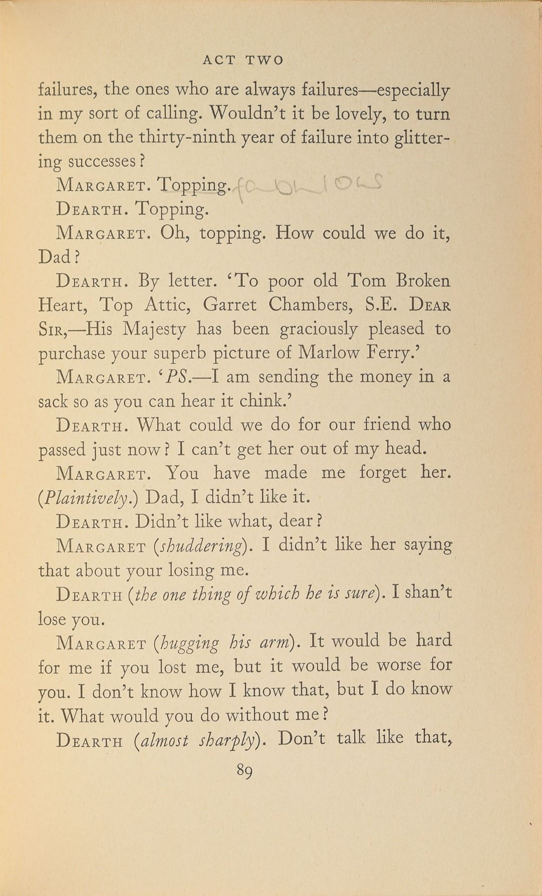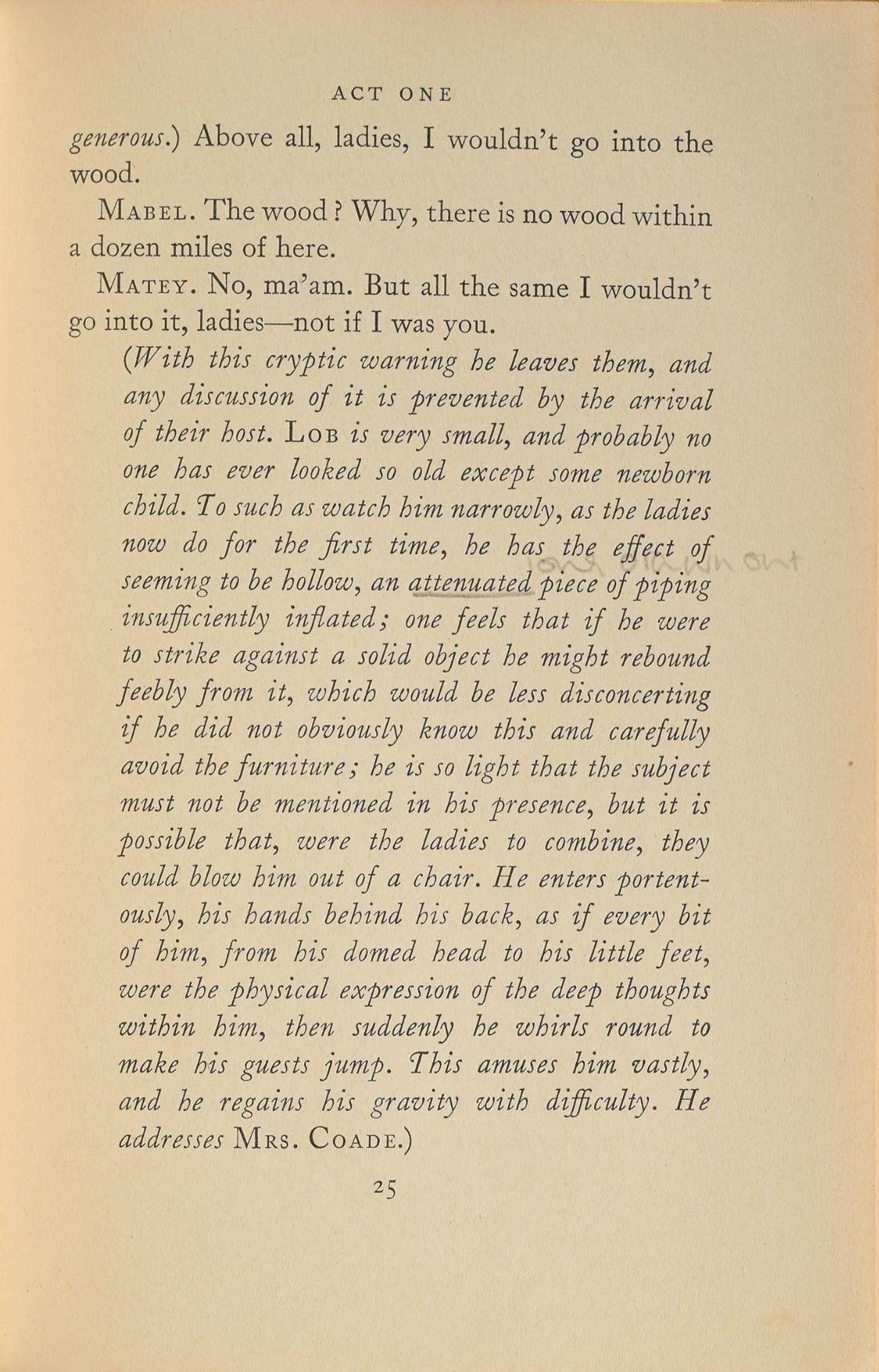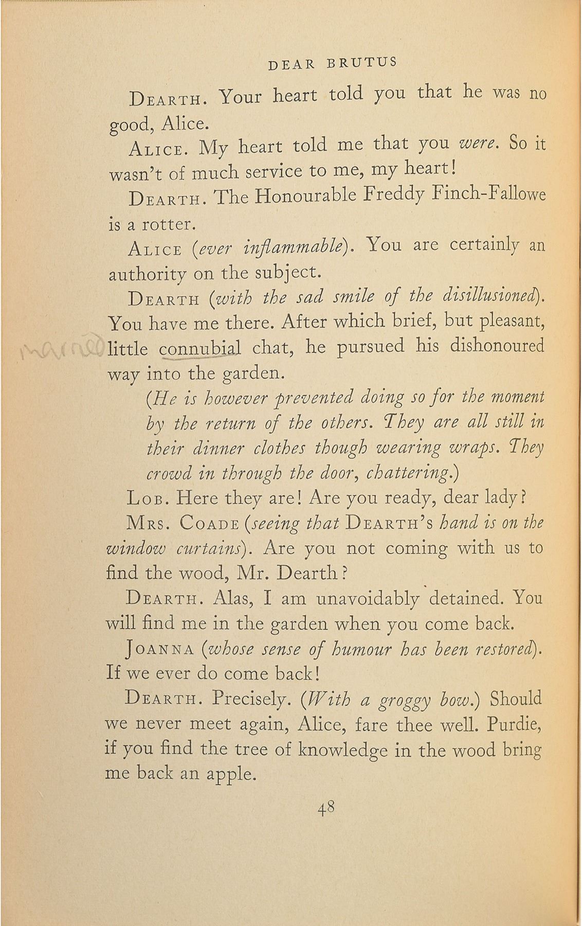 Signed book: Dear Brutus by J. M. Barrie, used by Diana while attending West Heath Girls' School in Sevenoaks, Kent. Later printing. London: University of London Press, 1962. Hardcover, 5 x 7.5, 127 pages. Annotated on the first free end page in blue ink by Diana, incorporating her full name, "Diana Spencer." Several pages bear pencil notations in Diana's hand, generally the definitions of words. These include: "sarcastic" on page 23; "long drawn out" on page 25; "fate" on page 39; "connubial" on page 48; and "fabulous" on page 89. In fine condition, with soiling to the covers, sunning to the spine, and residue from an old removed bookplate on the inside of the front cover. A very rare personal book used by Diana in her youth.