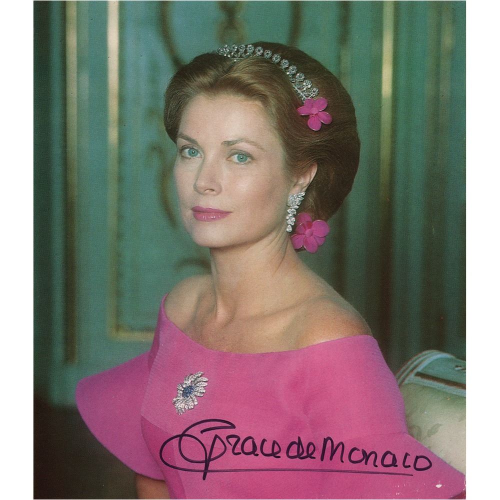 Color semi-glossy 5 x 5.75 lightweight photo of Grace Kelly as the princess of Monaco, signed in black felt tip, "Grace de Monaco." In fine condition. Accompanied by the original mailing envelope postmarked in November 1979.