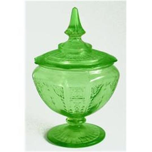 <tr><td>Title:Princess Green Depression Glass Candy Jar</td></tr>