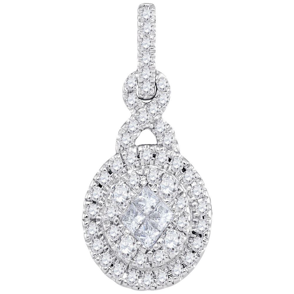 14kt White Gold Womens Princess Round Diamond Cluster Pendant 1/2 Cttw.