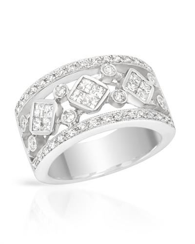 Princess & Round Halfway Diamond Band in 18K White Gold | 256583 6.5 Grams, featuring 0.44 Princess ct 40 0.68 ct 12 ct 18 ct