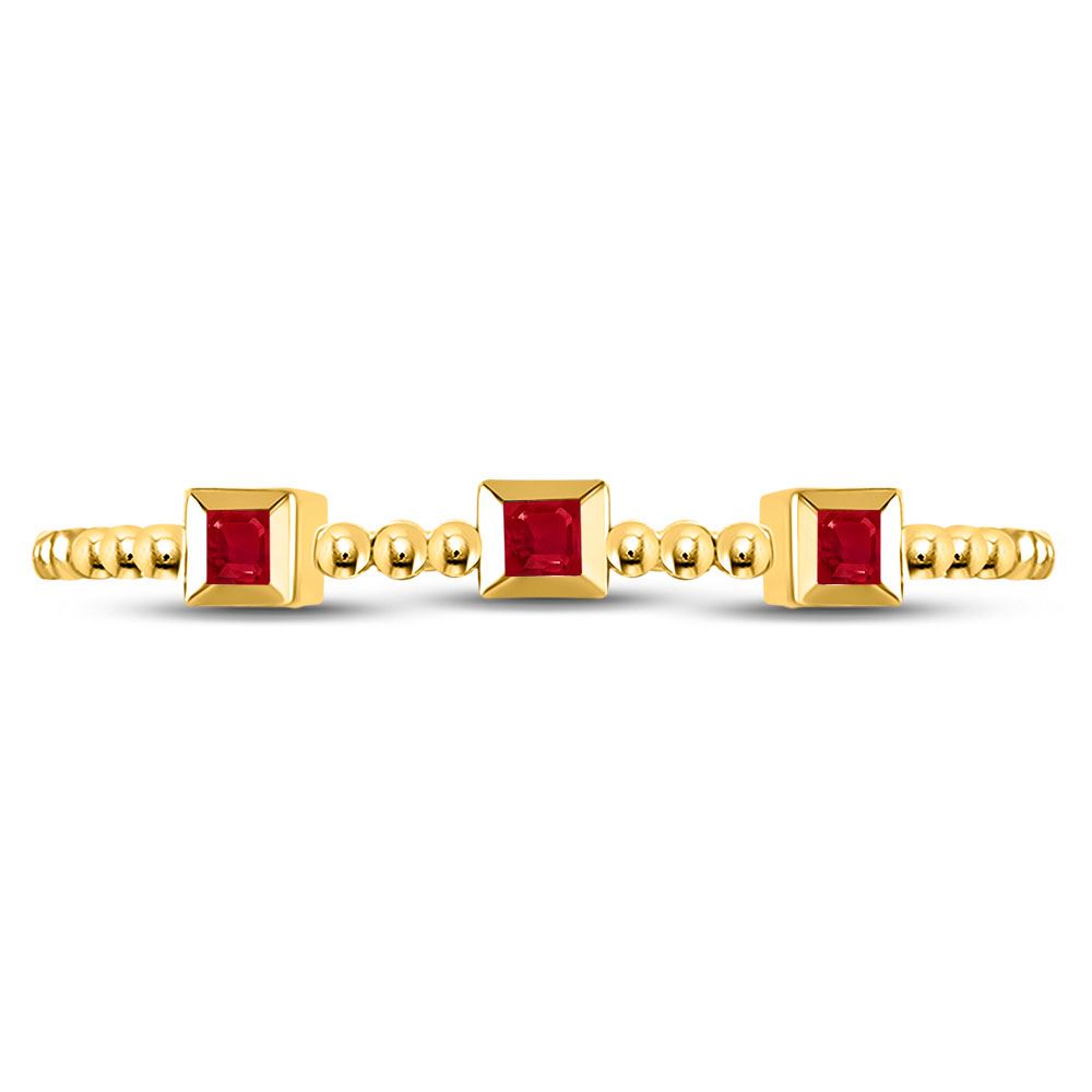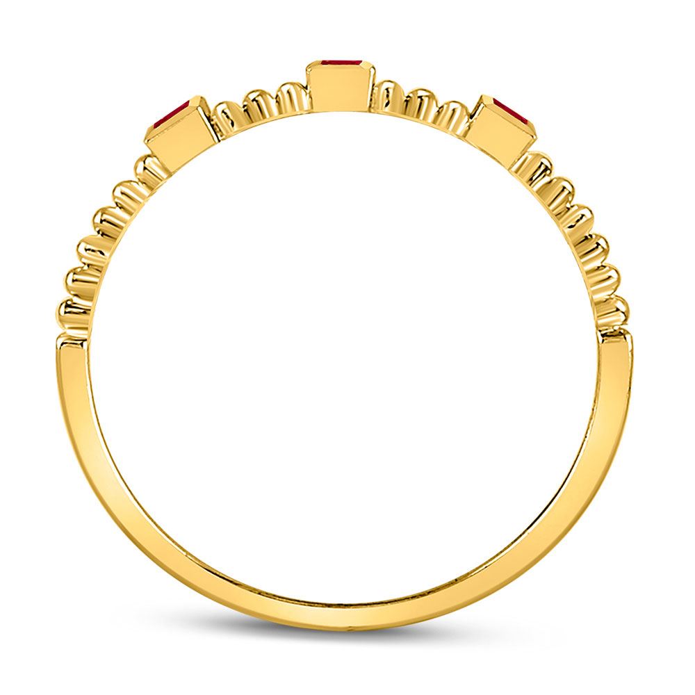 10kt Yellow Gold Womens Princess Ruby 3-Stone Beaded Stackable Band Ring 1/20 Cttw