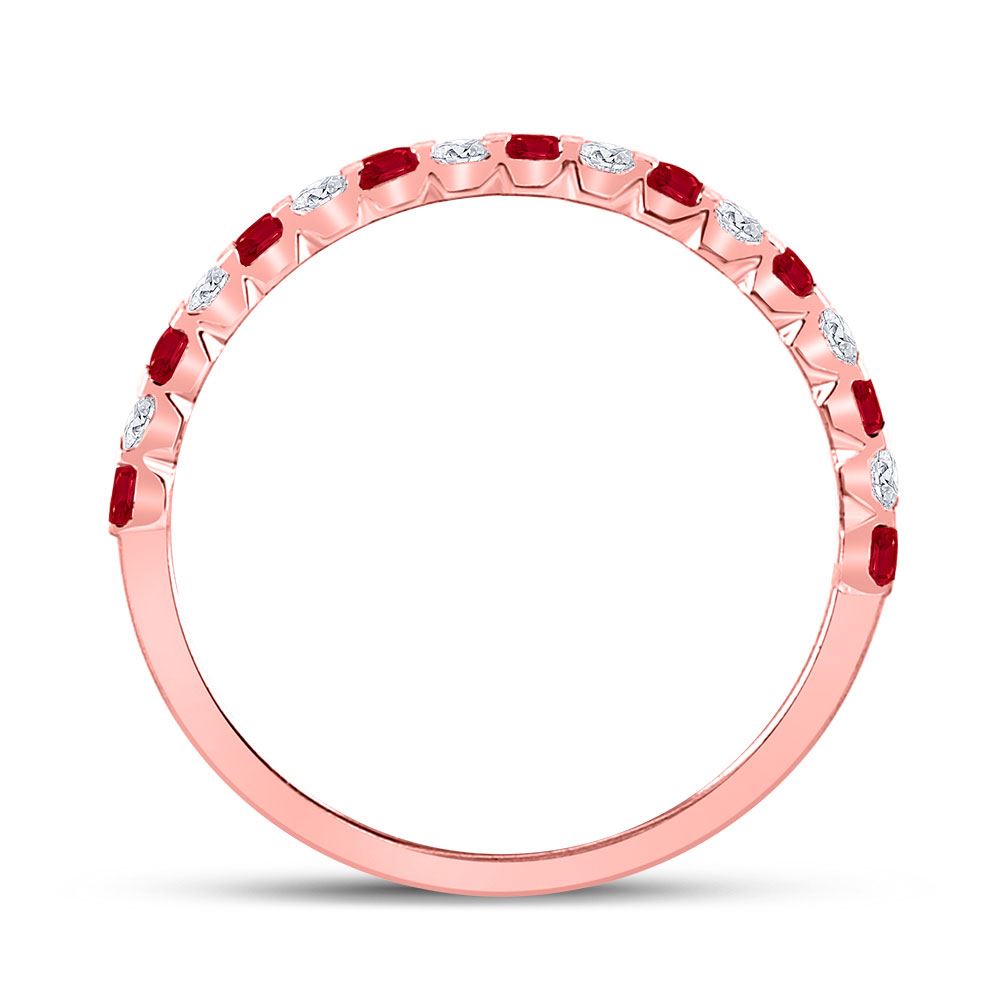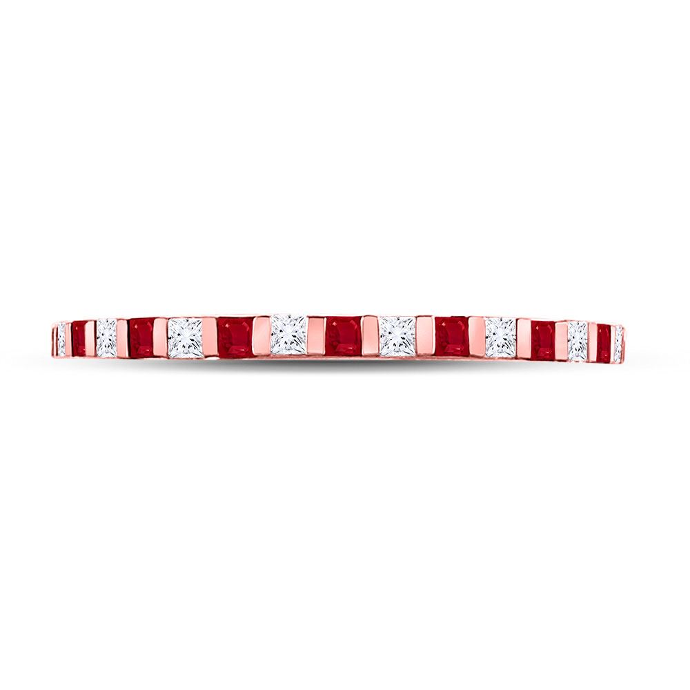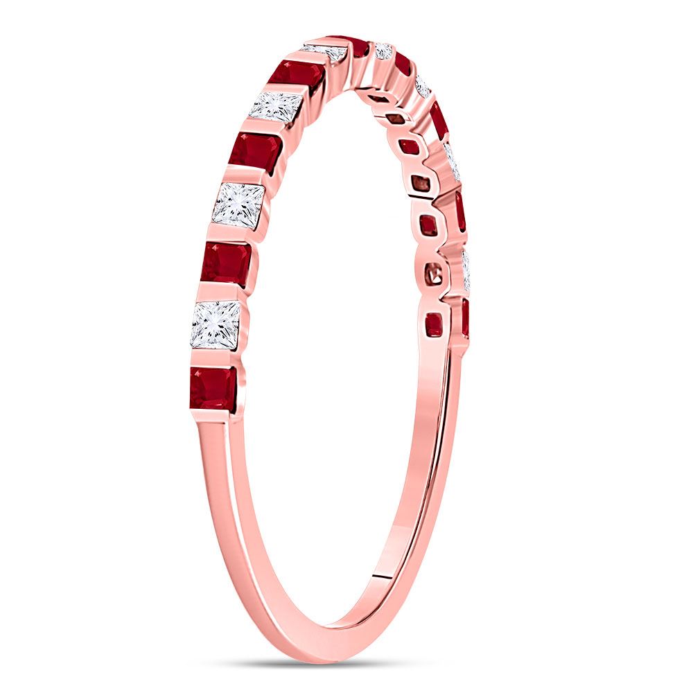 10kt Rose Gold Womens Princess Ruby Diamond Alternating Stackable Band Ring 3/8 Cttw