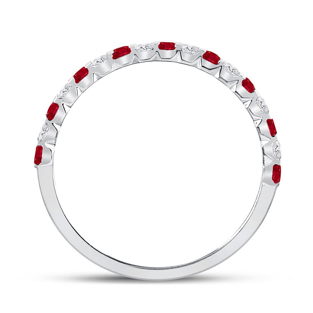 10kt White Gold Womens Princess Ruby Diamond Alternating Stackable Band Ring 3/8 Cttw